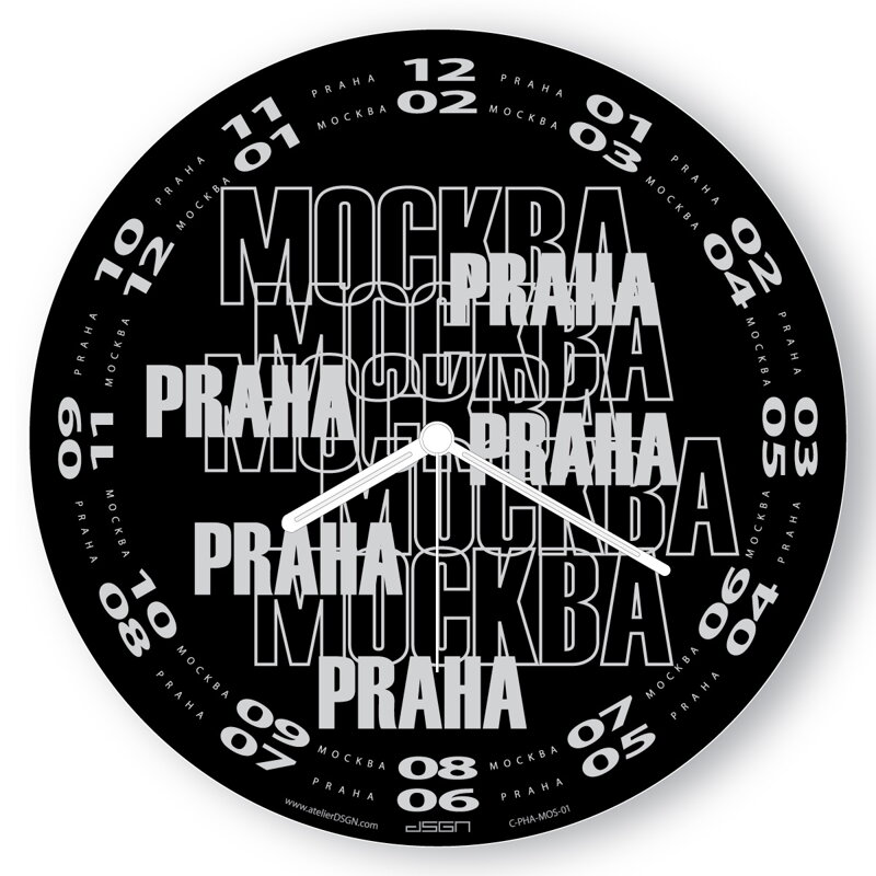 Černé hodiny Praha-Moskva 28x28 cm, plexi